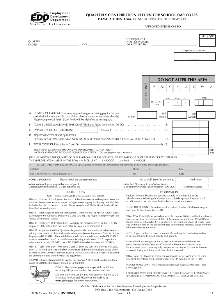 To use the De9423, individuals must first ensure they have the correct version of the form. This can typically be obtained from official sources or relevant agencies. Once in possession of the form, users should carefully read the instructions provided. Completing the De9423 involves entering specific information accurately, ensuring that all required fields are filled. After filling out the form, it may need to be submitted electronically or via traditional mail, depending on the guidelines set by the issuing authority.