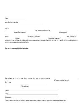 To obtain an example of the AAPC apprentice removal letter, you can refer to official AAPC resources or request templates from professional coding communities. Many organizations provide sample letters that can serve as a guide for formatting and content. Utilizing these resources can help ensure that your letter meets all necessary requirements.