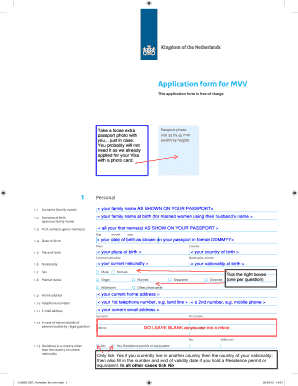 The mvv issue form example is a template that guides users through the process of filing for an MVV (Provisional Residence Permit) in the Netherlands. It is important as it ensures applicants provide all necessary information and documentation, streamlining the application process. Utilizing this example can help avoid common pitfalls and reduce delays.