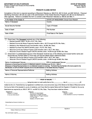 - Obtain the official Probate Claims Notice form from the Wisconsin probate court or relevant state resources.