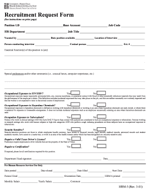 A recruitment request form is a tool used by organizations to streamline the hiring process. It allows managers to request new hires by capturing essential details such as job title, department, and reason for hiring. With airSlate SignNow, you can easily create, send, and eSign these forms, enhancing efficiency in recruitment.