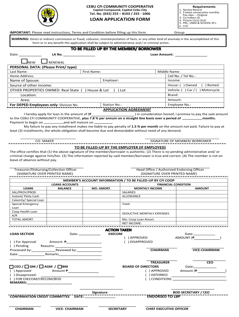CEBU CFI COMMUNITY COOPERATIVE Form