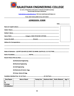 An admission form format is a structured template used for collecting essential information from applicants, typically for educational institutions or programs. It helps streamline the enrollment process and ensures that all necessary data is gathered efficiently.