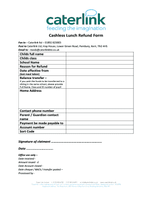 Using the Caterlink Ltd Parent Refund Form involves several straightforward steps. First, parents should download the form from the official website or obtain a copy from the school. After filling out the required fields, including personal information and details about the refund request, parents can submit the form electronically or via traditional mail. It is important to ensure that all information is accurate and complete to avoid delays in processing.