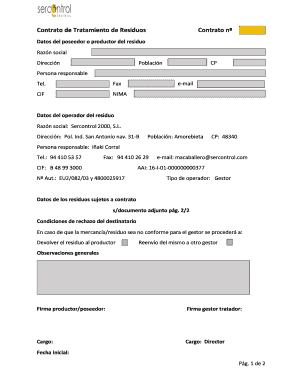 A contrato de tratamiento de residuos modelo is a standard agreement used to establish terms for waste management services. It outlines the responsibilities of both the waste producer and the treatment provider, ensuring compliance with regulations. Utilizing an effective modelo can streamline the waste treatment process.