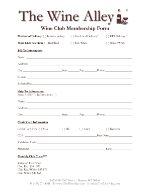 The Wine Club Membership Form The Wine Alley allows for various convenient payment options, including credit/debit cards and online payment processors. This flexibility enables members to choose their preferred method, ensuring a seamless signup process.