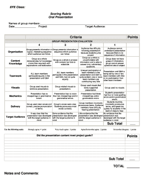 EFE Class Scoring Rubric Oral Presentation Kresaorg Form