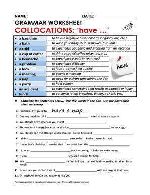 NAME DATE GRAMMAR WORKSHEET COLLOCATIONS Have Form