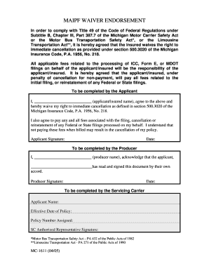 Get more for michigan waiver endorsement mc 1611