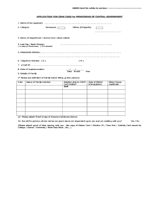 Cghs Application Form for Pensioners