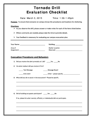 Tornado Drill Checklist Form