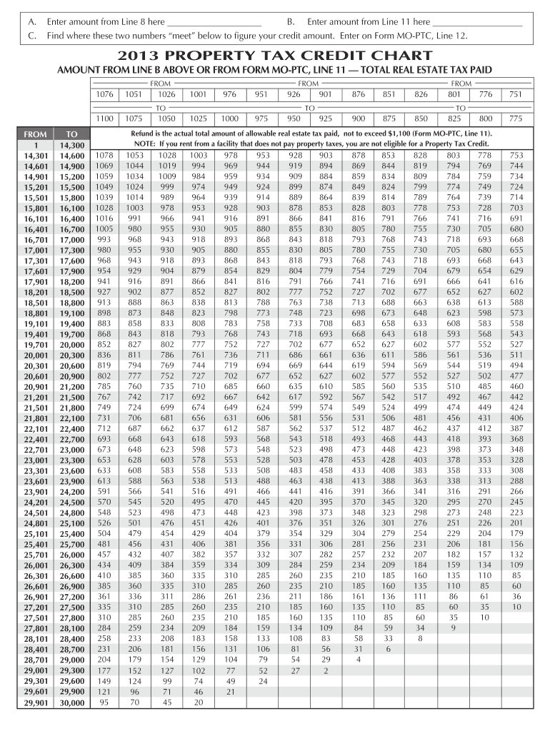 Find and fill out the correct 2013 form mo ptc property tax credit claim dor mo