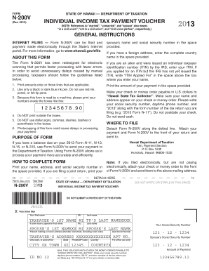 The Form N-200V is a Hawaii state tax payment voucher used by taxpayers to submit payments for their state income tax liabilities. This form is essential for individuals who owe taxes and prefer to make payments through the mail rather than electronically. It provides a structured way to ensure that payments are correctly applied to the taxpayer's account.