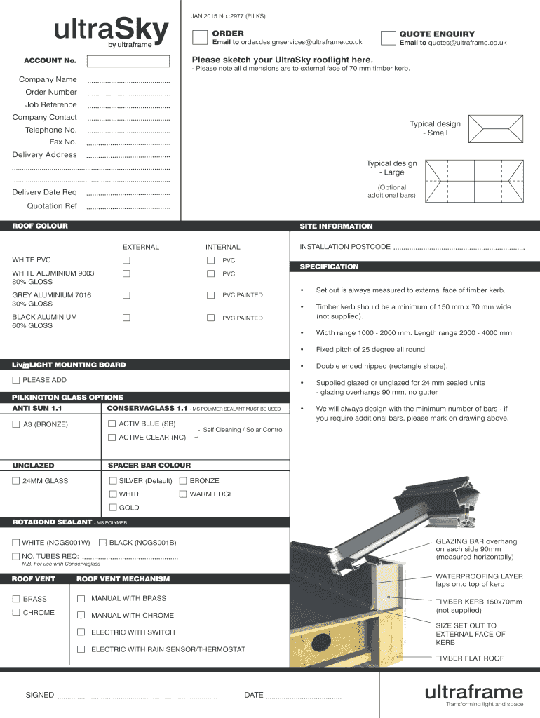 Key elements of the Ultra Sky Order Form Ultraframe