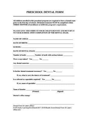 Preschool Dental Form