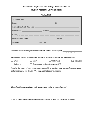 Get more for Student Grievance Form Paradise Valley Community College Pvc Maricopa