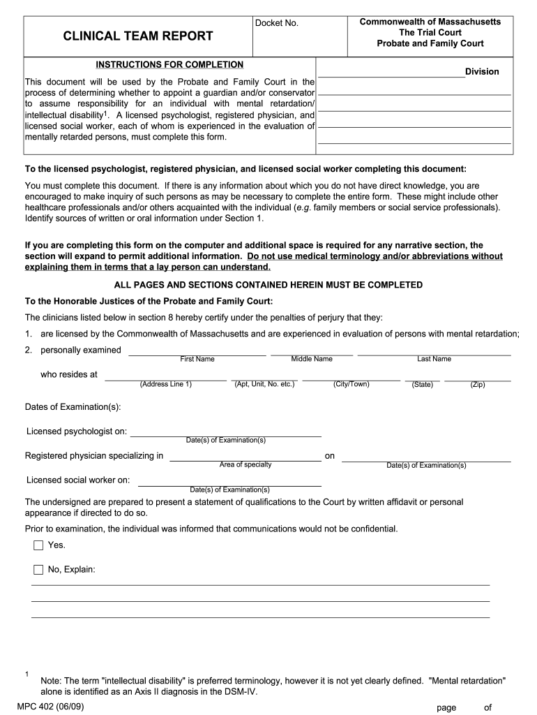 Get more for fillable clinical team report
