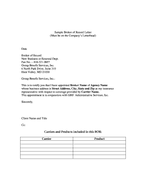 The bor template, or broker of record template, is a critical document used in the real estate and insurance industries. It designates a specific broker to represent a client in transactions, ensuring that the broker receives compensation for their services. This template is essential for establishing a clear understanding between the client and the broker regarding their roles and responsibilities.