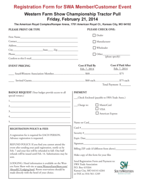 The Swa registration form is a crucial document used for registering individuals within specific organizations or associations. This form collects essential information from applicants, such as personal details, contact information, and membership preferences. It serves as the foundation for membership processing and ensures that all necessary data is available for organizational use.