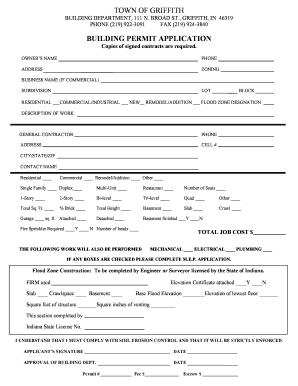 Griffith Indiana Building Department Form