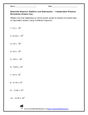 Access to the scientific notation addition and subtraction independent practice worksheet is available at a minimal fee. This price includes not only the worksheet but also the corresponding answers, which provide valuable insights into the problem-solving process. Investing in this resource can signNowly enhance your learning experience.