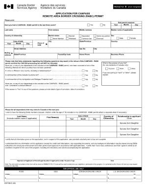The legal use of the application for CANPASS remote area border is governed by specific regulations that ensure compliance with border security measures. To be considered valid, the application must meet the requirements set forth by border control agencies. This includes providing truthful information and adhering to any additional conditions that may apply. Utilizing a trusted eSignature platform like signNow can enhance the legal standing of your completed application, ensuring it meets all necessary legal frameworks.