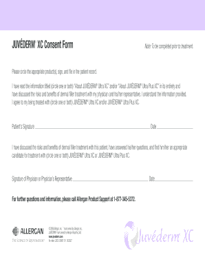 The JUV?DERM? XC Consent Form is a vital document that ensures patients provide informed consent before undergoing JUV?DERM? XC treatments. This form outlines the procedure, potential risks, and benefits, helping to maintain transparency and trust between providers and patients.