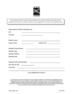 The eraf request form can be submitted through various methods, depending on the healthcare provider's policies. Common submission methods include: