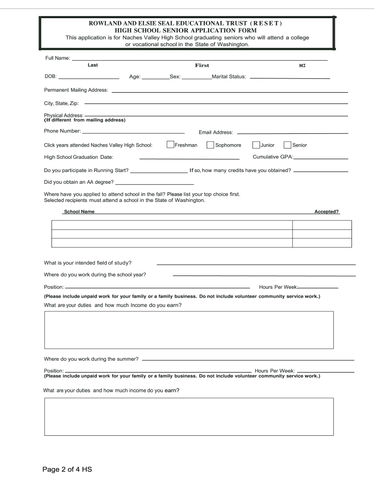 ROWLAND and ELSIE SEAL EDUCATIONAL TRUST RESET Form