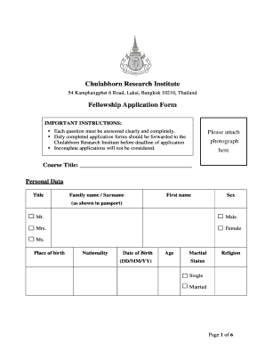 When filling out the Chulabhorn Research Institute Fellowship Application Form Cri Or, pay close attention to the required fields, such as personal information, academic background, and proposed research plan. Ensure all details are accurate and neatly presented to enhance your application's professionalism.