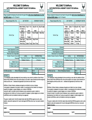 Sanparks gate registration and indemnity forms are essential documents required for visitors entering national parks. These forms ensure that visitors acknowledge risks associated with park activities and provide necessary information for their registration. Properly completing these forms helps streamline the entry process into protected areas.