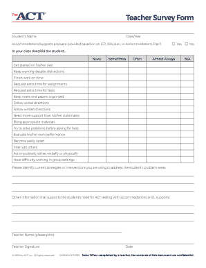 Get more for act teacher survey form