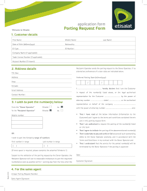 The Etisalat porting request form is a document that allows you to transfer your mobile number from one service provider to Etisalat. Completing this form is essential for ensuring a smooth transition while retaining your existing number. It's a straightforward process that can be completed online or at an Etisalat store.