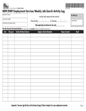 - For each job search activity, enter the date, type of activity, employer name, and any relevant notes.