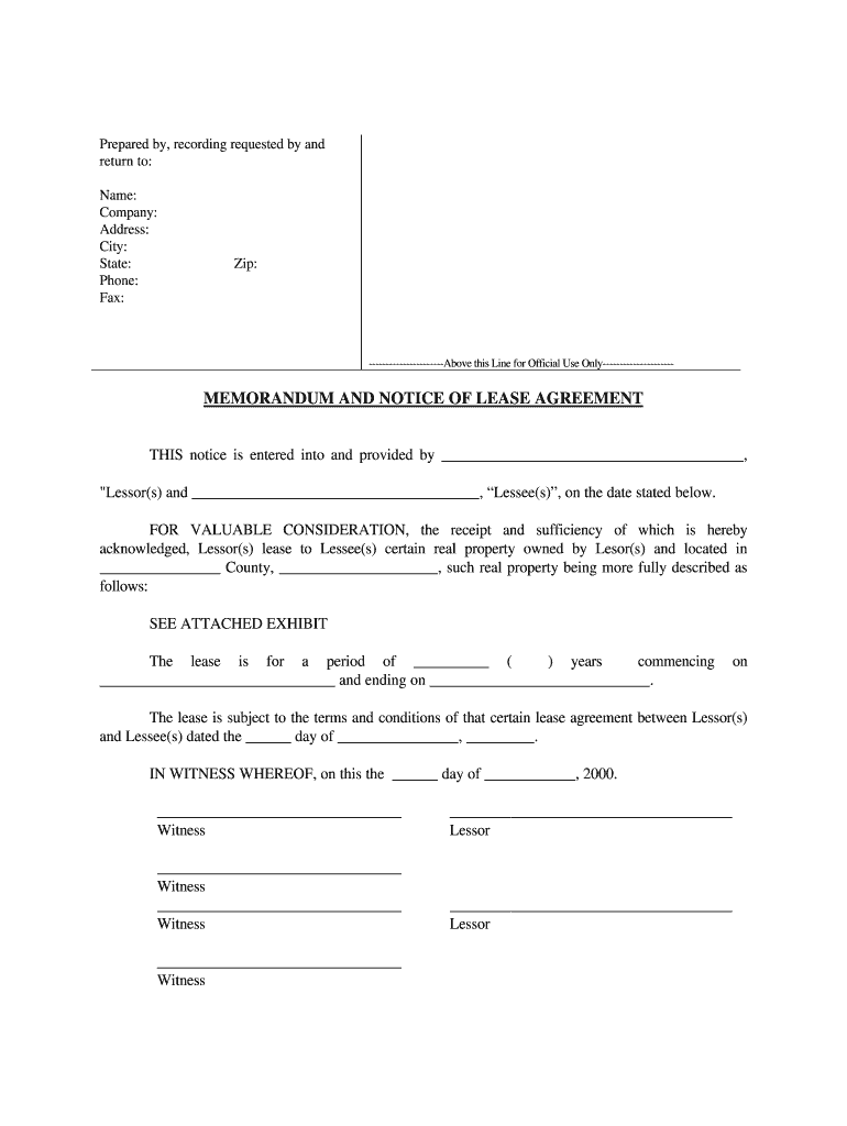 Get more for memorandum of lease form