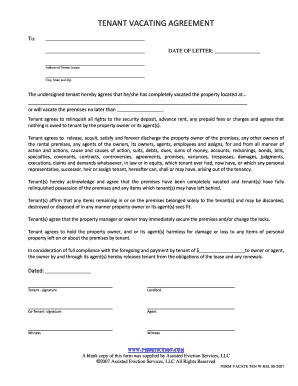 Get more for Tenant Vacating Agreement With Release Proeviction