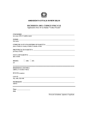 Get more for Richiesta Del Codice Fiscale Ambasciata D'Italia New Delhi