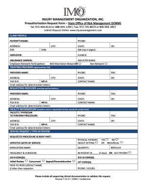 Get more for Preauthorization Request Form Injury Management Organization Inc