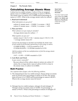 Completing the average atomic mass worksheet involves several key steps to ensure accuracy and understanding. Begin by gathering the necessary information about the isotopes in question, including their masses and relative abundances. Next, use the formula for average atomic mass, which is the sum of the products of each isotope's mass and its relative abundance. This can be expressed as: