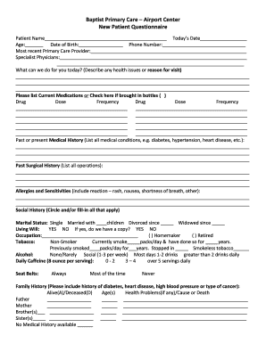 Get more for Baptist Primary Care Airport Center New Patient Questionnaire