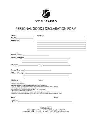 Get more for PERSONAL GOODS DECLARATION FORM World Cargo