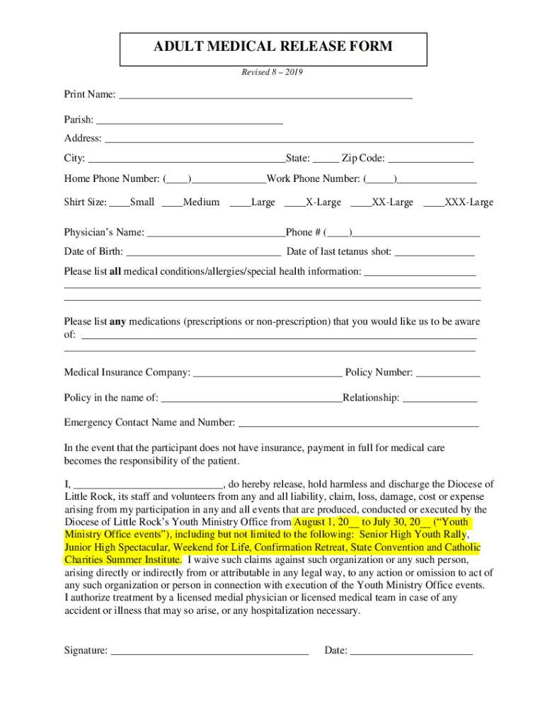 Get more for Cocodoc comform8647662 adult medical releaseAdult Medical Release Form Fillable, Printable & Blank PDF