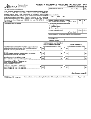 To complete the Alberta Insurance Premiums Tax Return, certain documents are necessary. These include detailed records of all insurance premiums collected during the reporting period, any relevant financial statements, and documentation supporting any deductions claimed. Having these documents readily available can facilitate a smoother completion process and ensure that the IPTR form is accurate and comprehensive.
