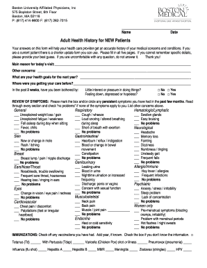 The Adult Health History Form can be obtained directly from Boston Medical Center’s website or by visiting the facility. Patients may also request a copy by calling the BMC patient registration office at. It is advisable to fill out the form prior to your first appointment to expedite the registration process.