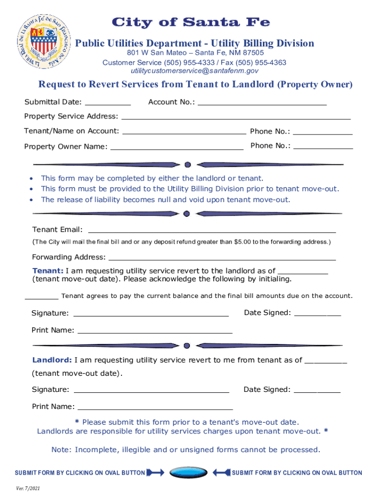 Request to Revert Services from Tenant to Landlord Form