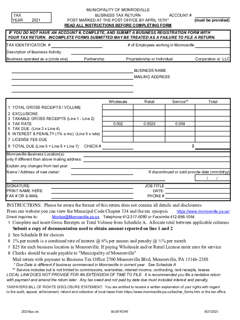 Monroeville Pa Us 450 Business Tax Form PDFPOST MARKED at the POST OFFICE by APRIL 15TH* Must Be