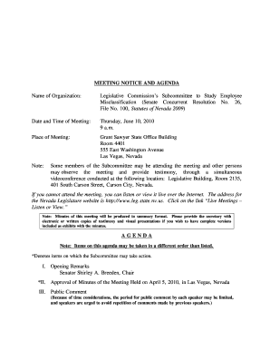 Find out other MEETING NOTICE AND AGENDA Name Of Organization Legislative Leg State Nv