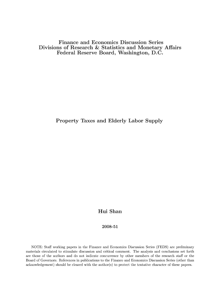 Get more for Property Taxes And Elderly Labor Supply Federal Reserve Federalreserve