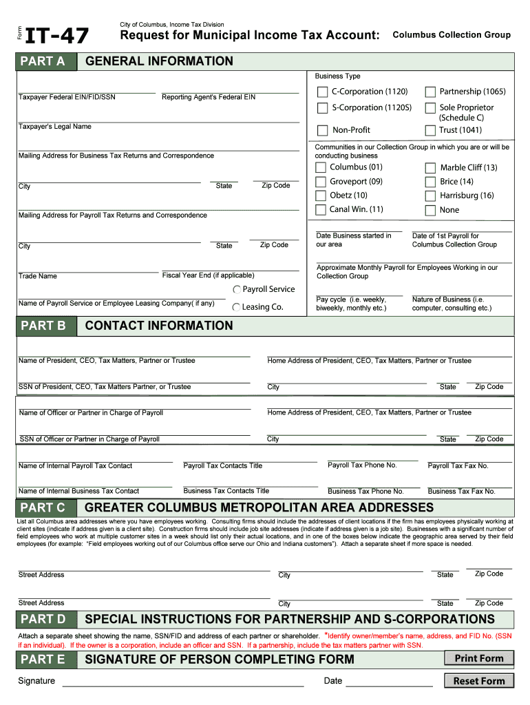 Find and fill out the correct request for municipal income tax account part a contact