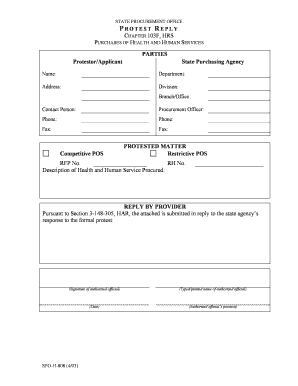 Get more for SPO Reply By Provider Form SPO H 808 State Procurement Office